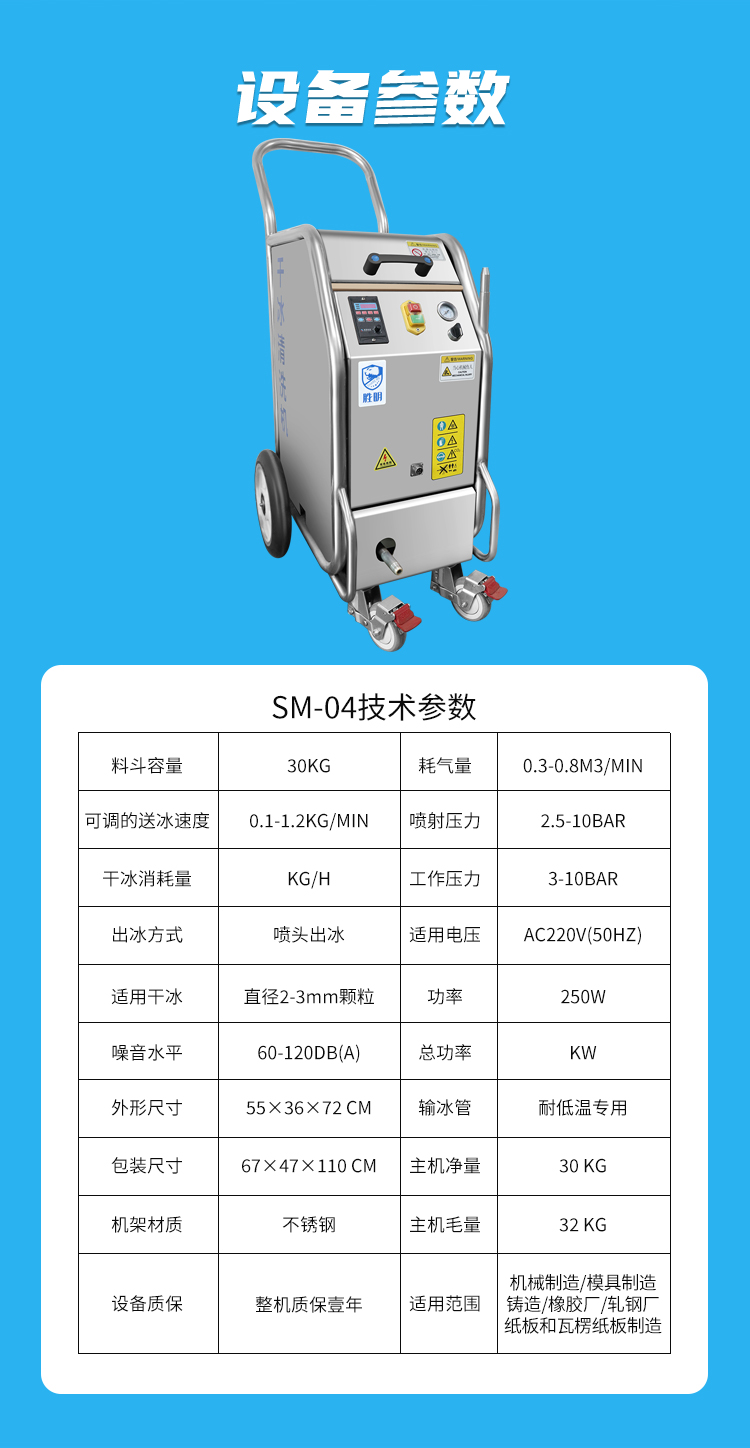 干冰清洗主要的設(shè)備是一臺干冰清洗機(jī)和一臺空壓機(jī),就可以對產(chǎn)品或者設(shè)備進(jìn)行清洗作業(yè),操作也相對而言比較簡便