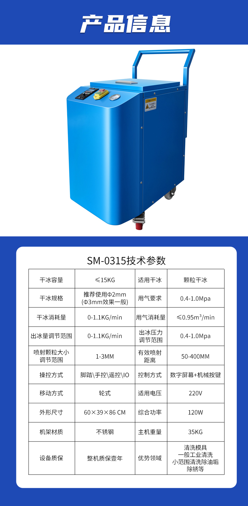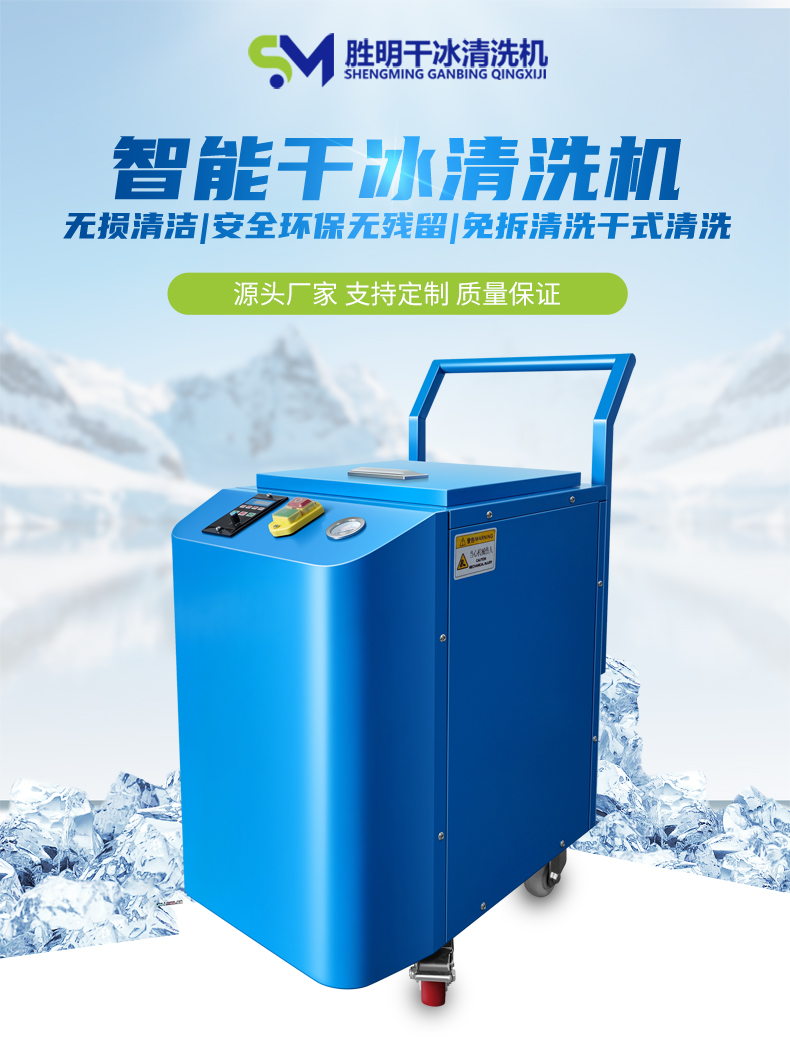 干冰清洗主要的設備是一臺干冰清洗機和一臺空壓機,就可以對產品或者設備進行清洗作業,操作也相對而言比較簡便