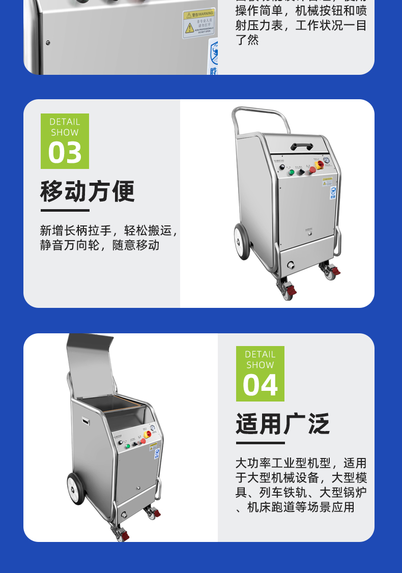 干冰清洗主要的設備是一臺干冰清洗機和一臺空壓機,就可以對產品或者設備進行清洗作業,操作也相對而言比較簡便