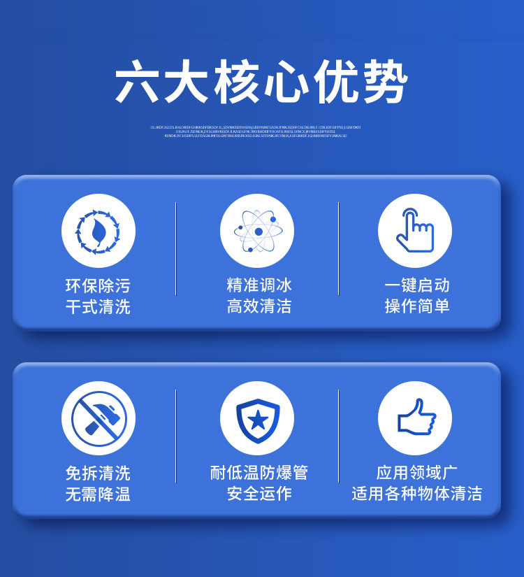 環保節能:干冰在噴射過程中直接轉變為氣體,不會產生任何污染物或化學廢液,對環境友好。同時,干冰可以循環利用,節約資源和能源消耗。