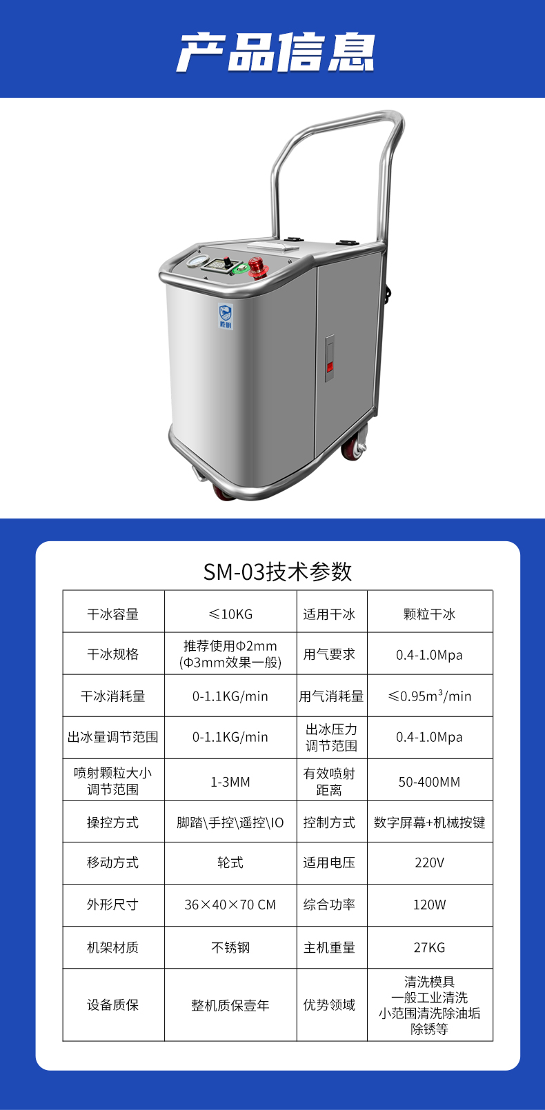 干冰清洗主要的設備是一臺干冰清洗機和一臺空壓機,就可以對產(chǎn)品或者設備進行清洗作業(yè),操作也相對而言比較簡便